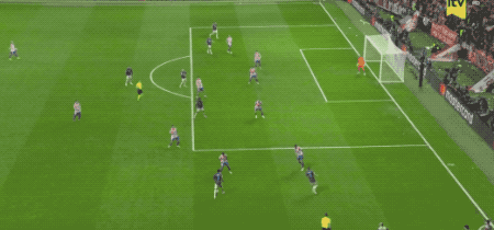 第53分钟,利用角球的机会,略伦特起脚射门,皮球打在了本怀特张开的手臂上,VAR介入后,裁判判罚了点球。